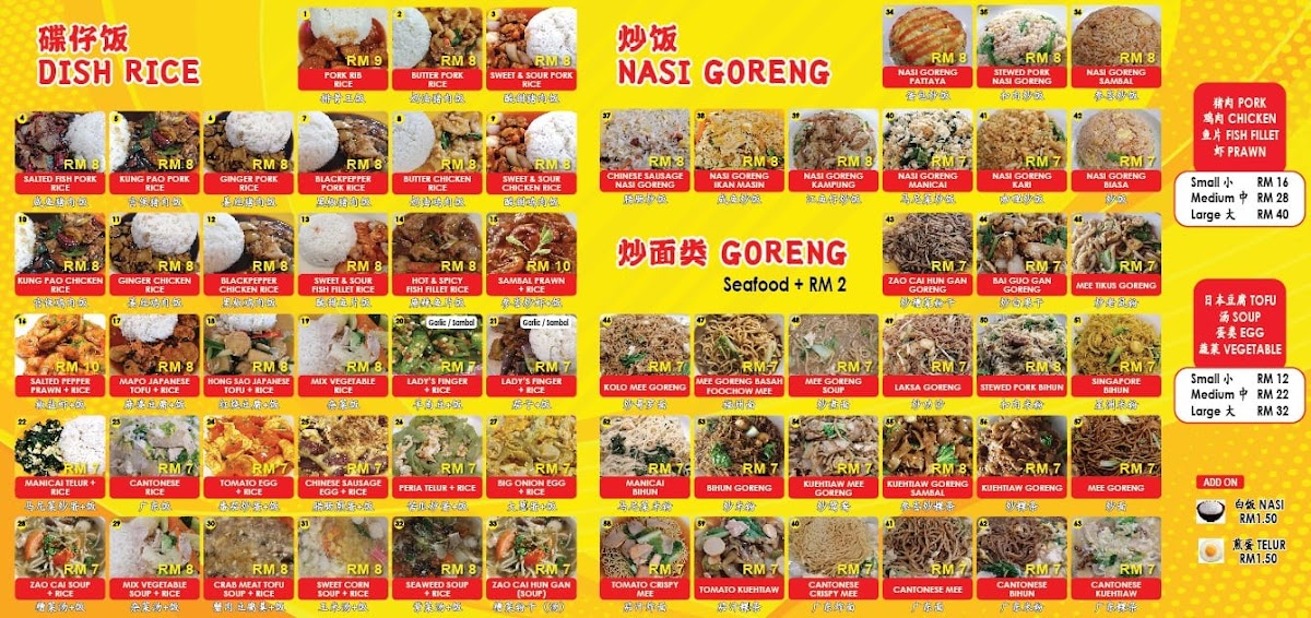 Happy Hour Cafe specializes in a rich variety of offerings that cater to all tastes, making it a favored choice among locals and visitors alike. The café is particularly well-known for its Set Rice options, perfect for a hearty meal any time of day. With choices such as the Pork Rib Rice (MYR 9.00) and the Butter Chicken Rice (MYR 8.00), each dish is prepared with care, ensuring a burst of flavor in every bite. Don’t miss out on the Nasi Babi Halia, a delightful ginger-infused pork rice that leaves a lingering warmth, captivating your palate.